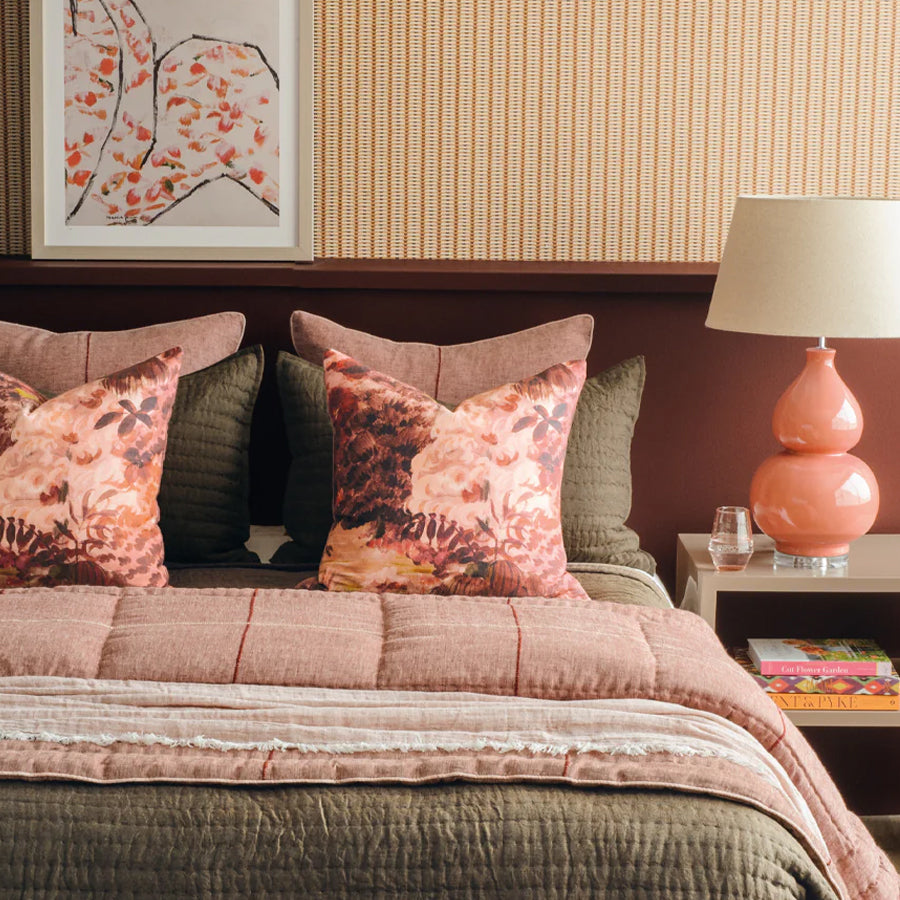 French linen cushion in blush gingham
